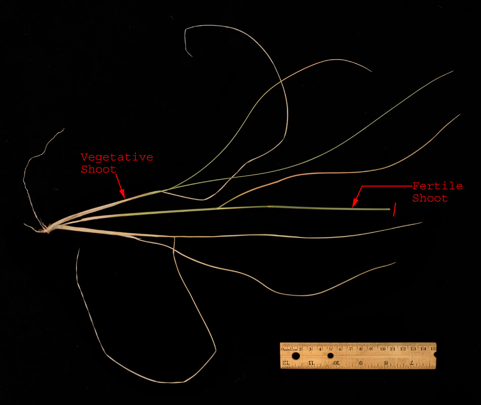 There is one fertile shoot (terminal portion removed) and two vegetative shoots in this picture.