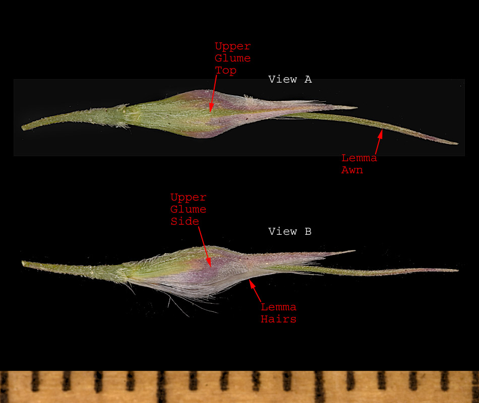 Lemma awns 1-32+ mm long; lemmas 1.5-7 mm long; callus to 2 mm long, blunt to pointed but not sharp-tipped; glumes 2.5-13 mm long; NOT [Lemma awns 50-225 mm long; lemmas 7-25 mm long; callus 2-6 mm long, sharp-tipped; glumes 15-45 mm long]