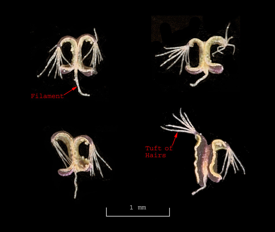 Each half (theca) of the anther is penicillate (equipped with a brush-like tuft of hairs).