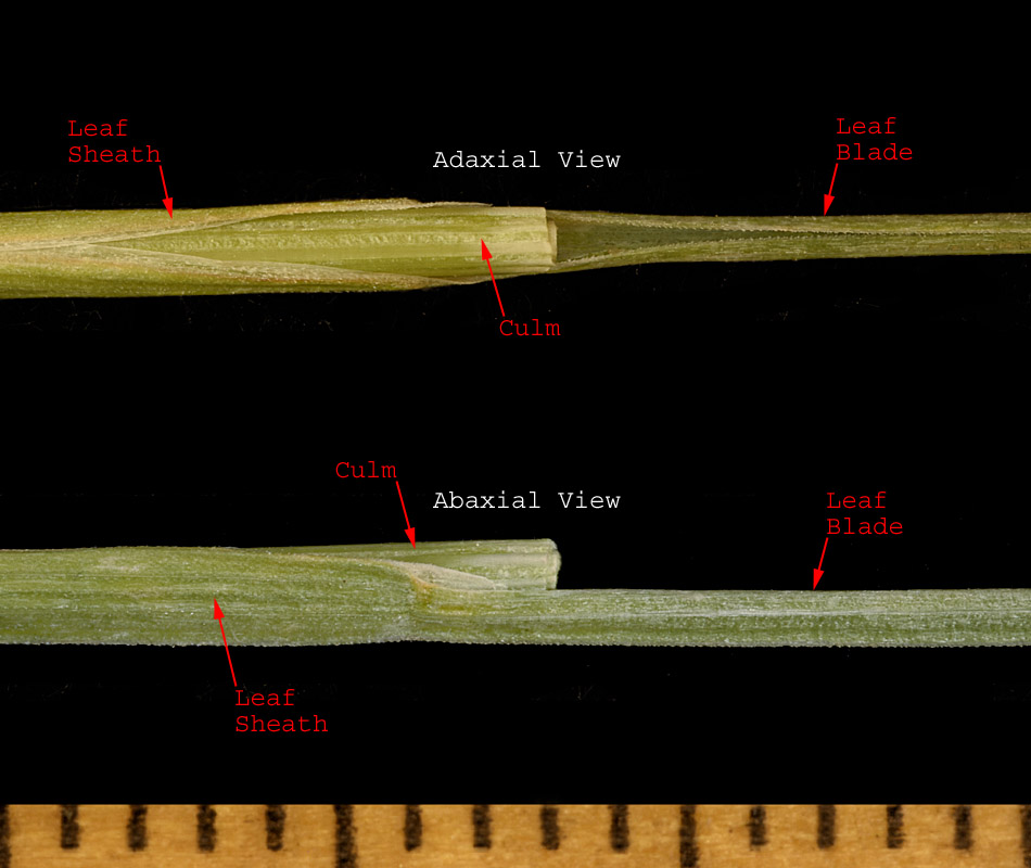 Note the culms and leaf sheaths are terete, not sharply edged. The leaf blades are usually < 1.5 mm wide and usually involute.