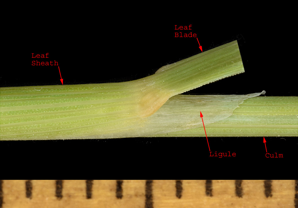 Note auricles are absent for all Calamagrostis species in Saskatchewan. Note also the ligules of this species are (0.5) 1-5.5 (6) mm long, whereas the ligules of C. canadensis are (1) 3-8 (12) mm long.