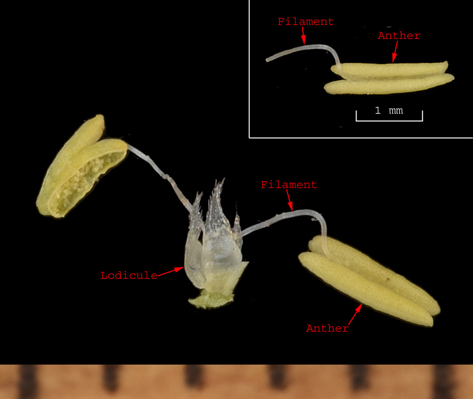 Note the anthers are (0.8) 1.2-2.5 mm long. Compare this to (2.5) 3-6 mm long for E. lanceolatus and 2.5-6 mm for Pascopyrum smithii.