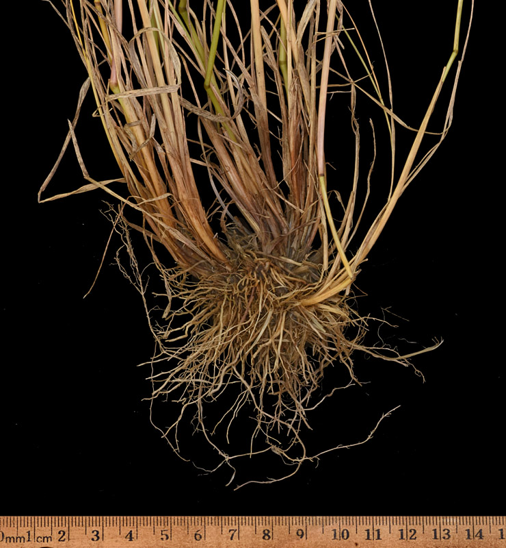 Note the plants are tufted with dense fibrous roots; rhizomes are absent or very short.