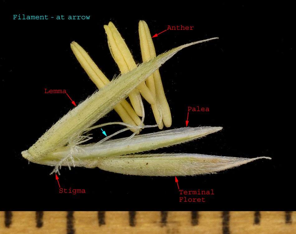 The following items are taken from keys in Flora of Saskatchewan, Fascicle 4, Grasses of Saskatchewan by Anna L. Leighton and Vernon L. Harms.  Family Poaceae is first divided into tribes, then the tribes are divided into genera, and the genera divided into species.  However, there are a number of tribes that are very difficult to distinguish morphologically.  These are grouped into a large, artificial tribe I call "Multitribe".  Multitribe is then divided into groups, and each group is then divided into genera.  The answers are in the order you would normally work through the keys.