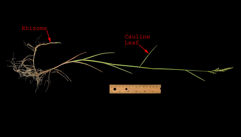 Note the presence of a rhizome.  Note also that most of the leaves are cauline, not basal.
