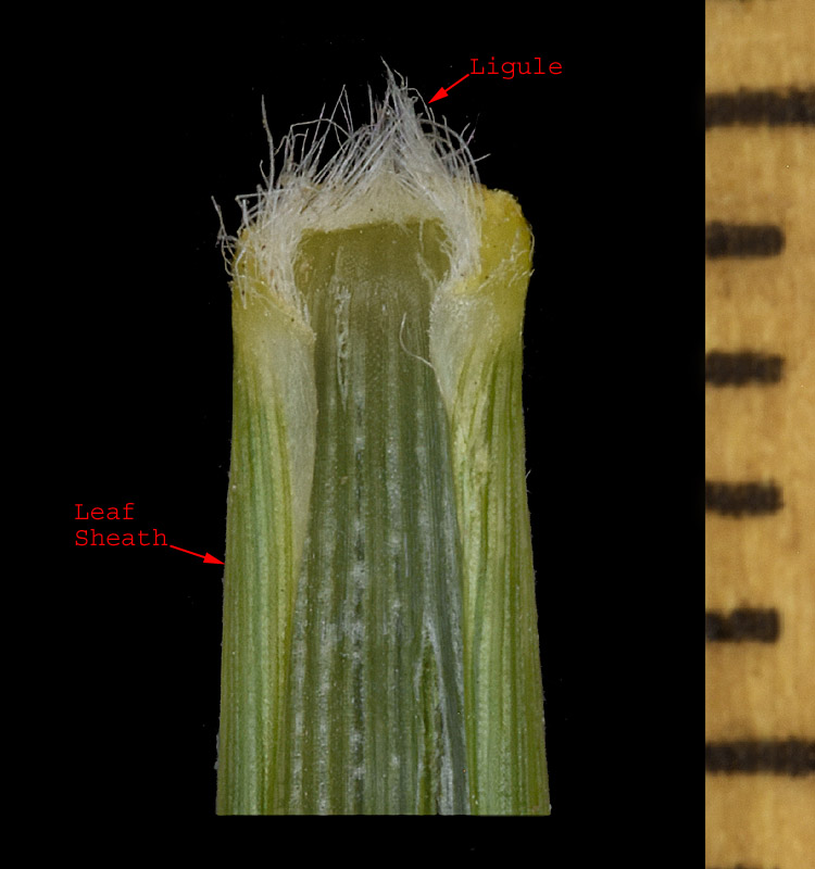 The ligule is a fringe of hairs fused at the base, 0.5-1+ mm long.