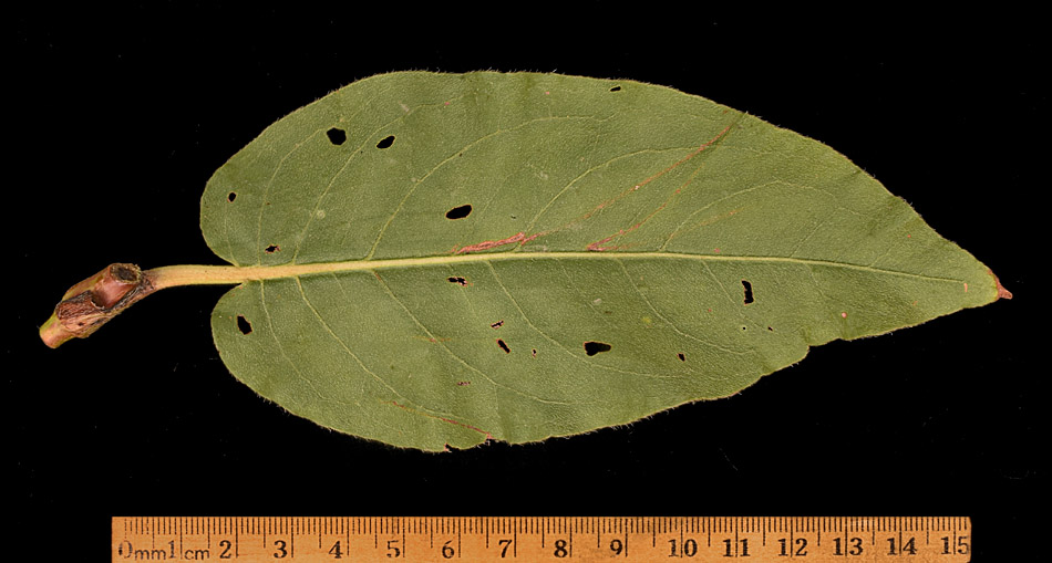 Plants growing above the water line (such as this one) tend to produce leaves with acute to acuminate apices, while plants growing in standing water tend to produce leaves with acute to rounded apices.