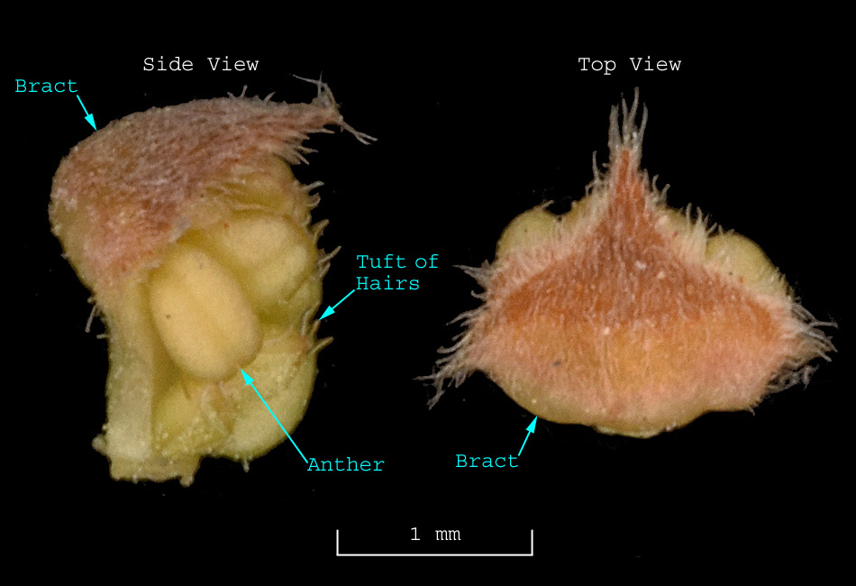 bracts of staminate catkins with coarse, straight, appressed hairs;