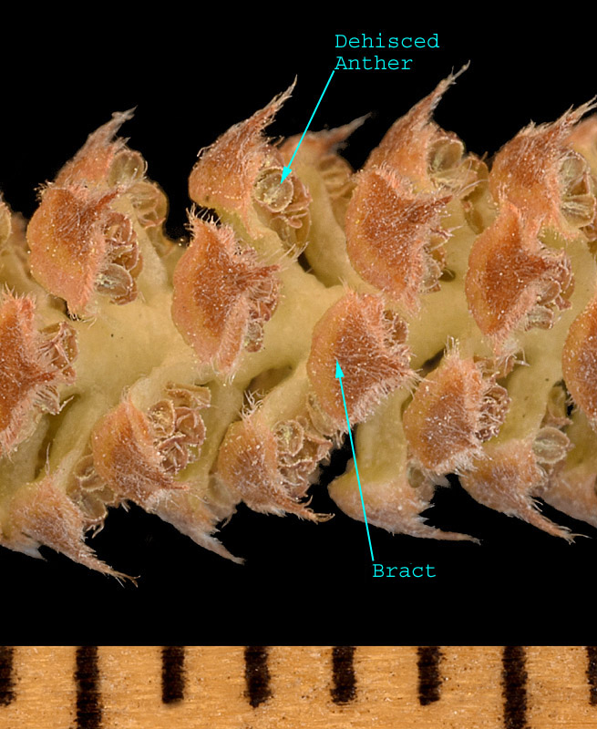bracts of staminate catkins with coarse, straight, appressed hairs;