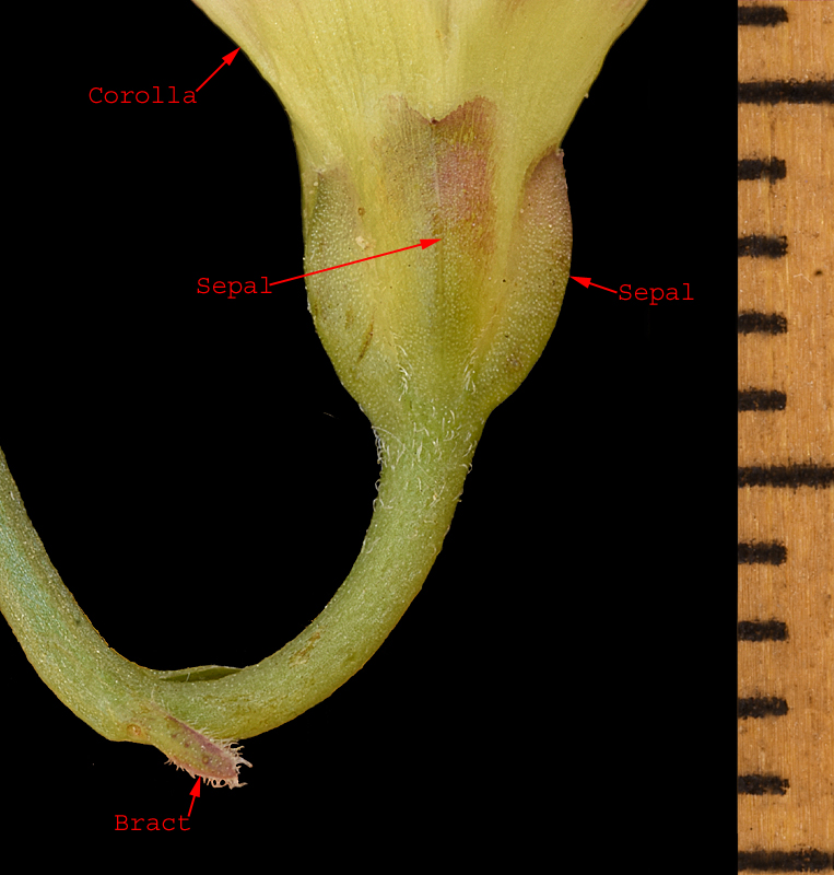 There are two, small linear bracts positioned below the flower. The sepals are subequal.