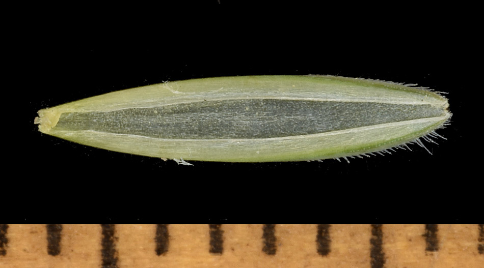 Lemmas awned, the awns usually (5) 8-120 mm long, shorter (to 3 (5) mm) in plants with glumes distinctly bowed out (as in E. curvatus); NOT [Lemmas unawned or with awns up to 4 mm long; glumes not distinctly bowed out at base]