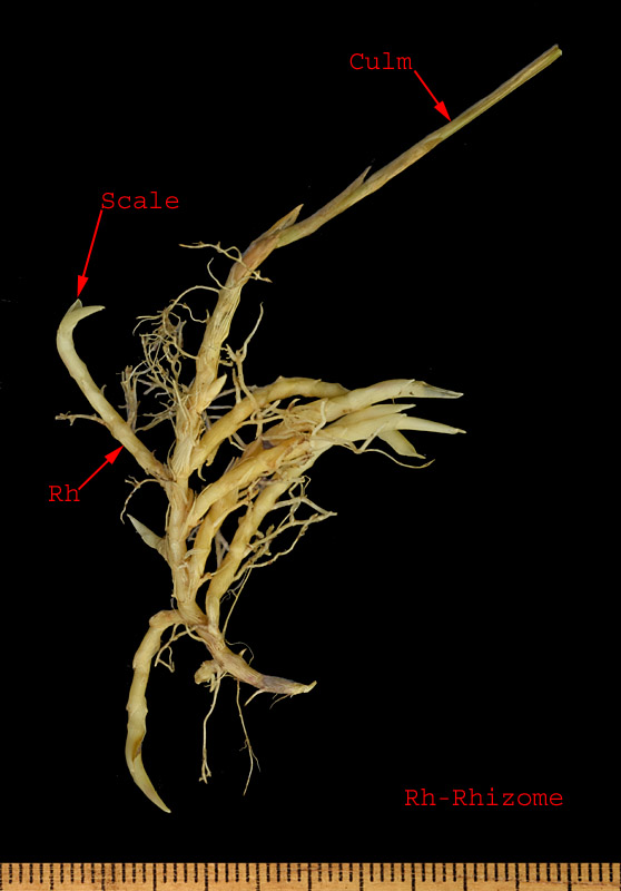 Glumes (including awn) slightly shorter or distinctly longer than the lemma; lemmas pubescent proximally with hairs to 1.2 mm long; rhizomes present, creeping, 1-2 mm wide, scaly; NOT [Glumes at most 3/4 as long as the lemma; lemmas glabrous or short pubescent proximally with hairs < 0.7 mm long; rhizomes, if present, then slender and lacking scales]