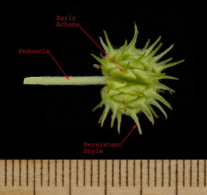 Note the head is pubescent but not densely woolly. The fruiting heads of this species are spherical to ovoid but not cylindrical.